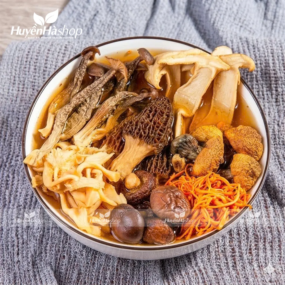 - Các loại nấm: Nấm lộc nhung, Nấm bụng dê, Nấm đùi gà, Nấm hương (đông cô), Nấm rơm (mỗi loại khoảng 50g-100g).