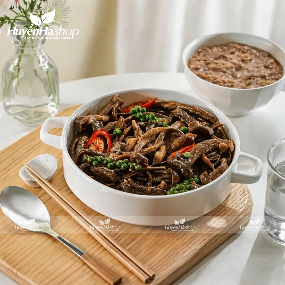 Nấm lộc nhung khô cần ngâm nước lạnh/ấm 20-30 phút cho nở, sau đó nấu chín trong khoảng 10-15 phút đối với món xào hoặc canh. Với các món hầm kỹ như gà hầm, thời gian nấu có thể kéo dài từ 1-2 tiếng để nấm mềm, ngấm vị và giữ được độ giòn ngon tự nhiên.